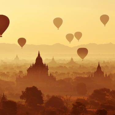 • Les temples de Bagan : Admirez ce site majestueux vu du ciel lors d’un vol en montgolfière ou depuis le sommet d'un temple millénaire, un spectacle à couper le souffle au lever du soleil.