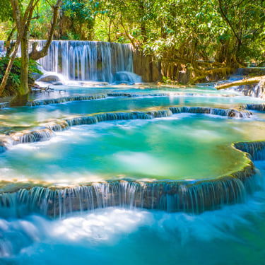 •Cascades de Kuang Si : Admirez ces chutes d’eau turquoise, parfaites pour une promenade ou une baignade rafraîchissante.