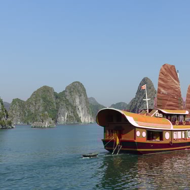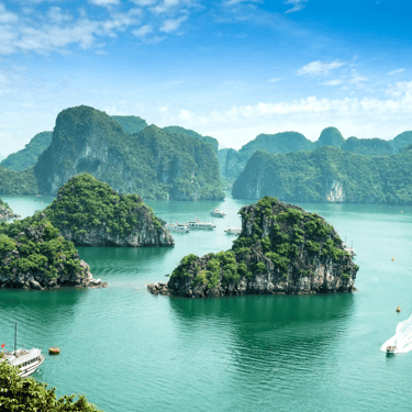 •Baie d’Halong : Naviguez entre les formations karstiques de cette baie légendaire, un spectacle naturel époustouflant.