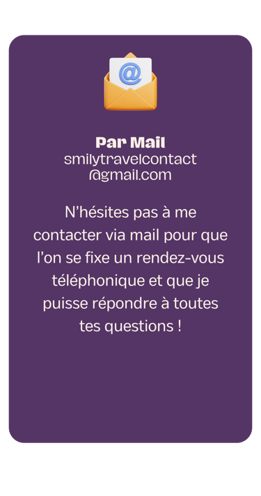 Je crois que chaque voyage doit être unique et inoubliable, mais surtout refléter vos envies et votre personnalité. Avec moi, pas de stress, pas de copier-coller : chaque itinéraire est créé pour vous faire vivre le voyage dont vous avez toujours rêvé.